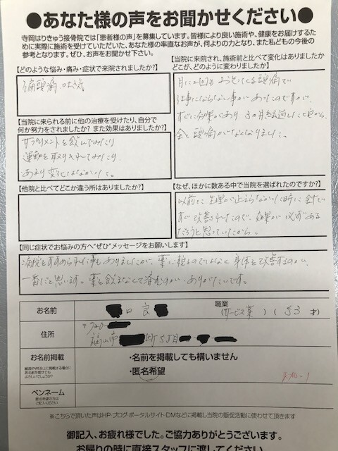 他院と比べてどこか違う所はありましたか?短時間の施術で効果あり