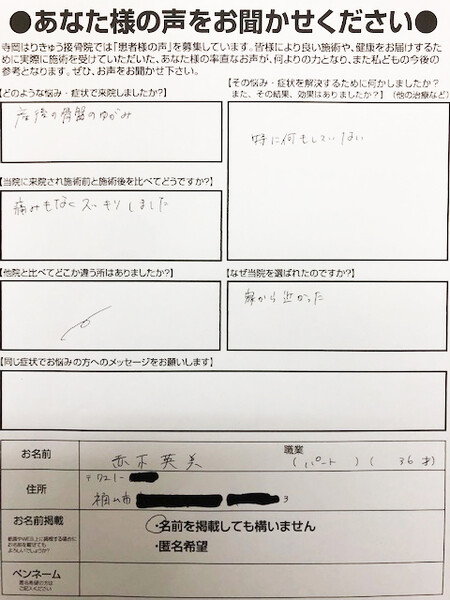 恥骨痛足の付け根の痛みがなくなった尾道市の匿名さん