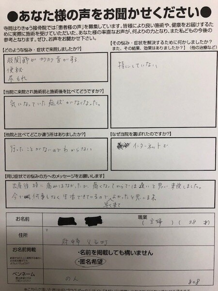 産後の 股関節のカクカク 便秘 尿もれがなくなった府中市のママ