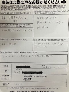 当院に来院され施術前と施術後と比べてどうですか?股関節の痛みがとれ 腰痛もなくなって体重も少し減った