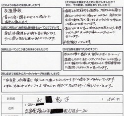 当院に来院され施術前と施術後と比べてどうですか?毎回、治療後には頭も首も軽くなり、すごく楽で気分も違い、助かっています。