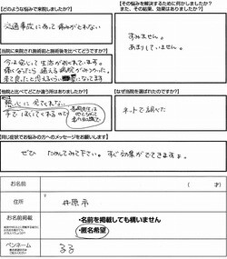 どのような悩みで来院しましたか?交通事故にあって痛みがとれない。