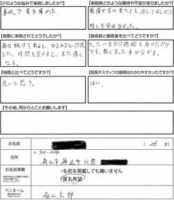 たった1日だけ施術を受けただけでも、軽くなった事がわかる。 -