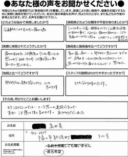 もう治らないのでは、、、という思いの連続でしたので本当に治療して頂き、良かった。ありがとうございました。