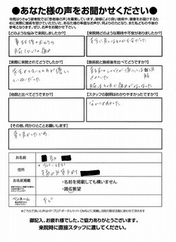 同じ症状でお悩みの方へメッセージをお願いします。スタッフの説明はわかりやすかった。