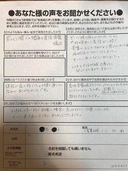 同じ症状でお悩みの方へメッセージをお願いします。お値段は良心的で的確に確実に良くなるように治療してくださいます