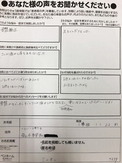 当院に来院され施術前と施術後と比べてどうですか?こしの痛みと尿もれもなくなった