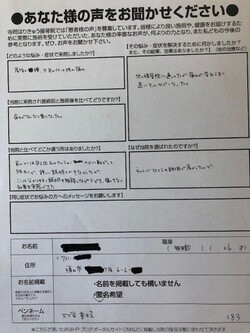 他院と比べてどこか違う所はありましたか?前のとこは月一回△のクッションの上に転がって終わりで詳しい説明とかなかったがここはわかりやすい説明や相談しながらでき、痛くもなく、効果を実感できた