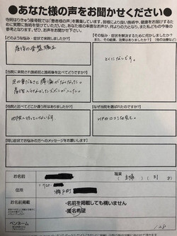 当院に来院され施術前と施術後と比べてどうですか?足の重だるさと腰痛がなくなった
