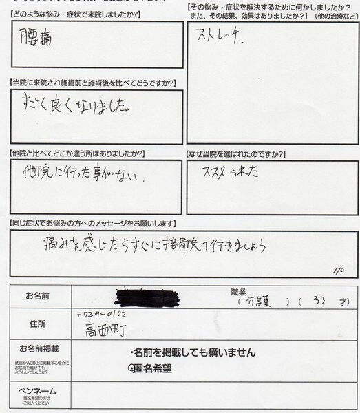 産後の尾骨の痛みが良くなった福山市の匿名さん