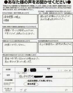 当院に来院され施術前と施術後と比べてどうですか?腰痛で歩いたり階段の上り下りが大変でしたができるようになりました