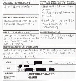 当院に来院され施術前と施術後と比べてどうですか?腰の痛みが取れ、体が動かしやすくなった。
