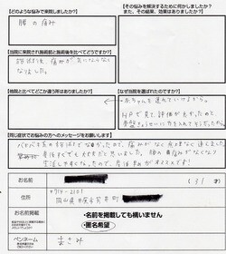 当院に来院され施術前と施術後と比べてどうですか?施術後、痛みが気にならなくなりました。