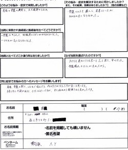 同じ症状でお悩みの方へメッセージをお願いします。産後、骨盤の開き、しびれで悩んだら、プロの手でみてもらった方が良いと思います。