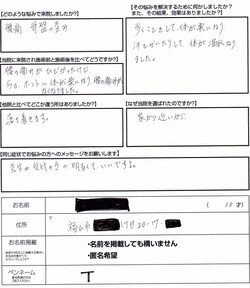 当院に来院され施術前と施術後と比べてどうですか?腰の痛みがひどかったけど、今はホントに体が楽になり、腰の痛みがなくなりました。
