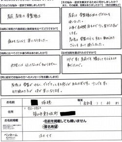 当院に来院され施術前と施術後と比べてどうですか?痛みもなくなり、楽になりました。