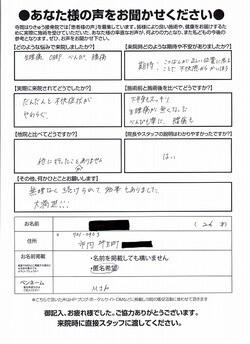 同じ症状でお悩みの方へメッセージをお願いします。無理なく続けられて効果もありました。大満足!!!