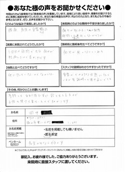 当院に来院され施術前と施術後と比べてどうですか?1回目の施術で大分痛みが軽減したので良かったです。