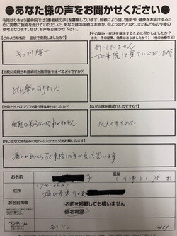 同じ症状でお悩みの方へメッセージをお願いします。痛みがあったらすぐ来院したほうが良いと思います