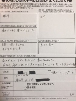 当院に来院され施術前と施術後と比べてどうですか?痛みが取れて楽になりました!