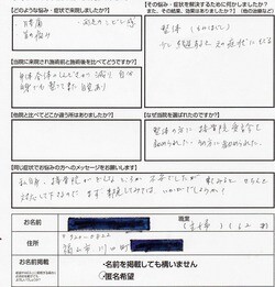 同じ症状でお悩みの方へメッセージをお願いします。私自身、接骨院がどんなところか不安でしたが、来てみるときちんと対応してくださるので、まず来院してみてはいかがでしょうか?