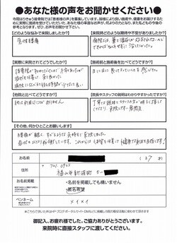 同じ症状でお悩みの方へメッセージをお願いします。丁寧な説明とスタッフの方が明るく接してくださり、来院しやすい雰囲気。