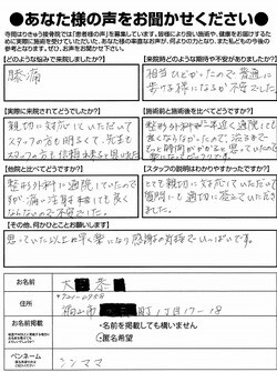 思っていた以上に早く楽になり感謝の気持ちでいっぱいです。