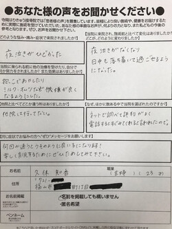 同じ症状でお悩みの方へメッセージをお願いします。何回か通うとうそのようにヨ良い子になります
