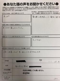 同じ症状でお悩みの方へメッセージをお願いします。1回で改善したので早く来ることをおすすめします